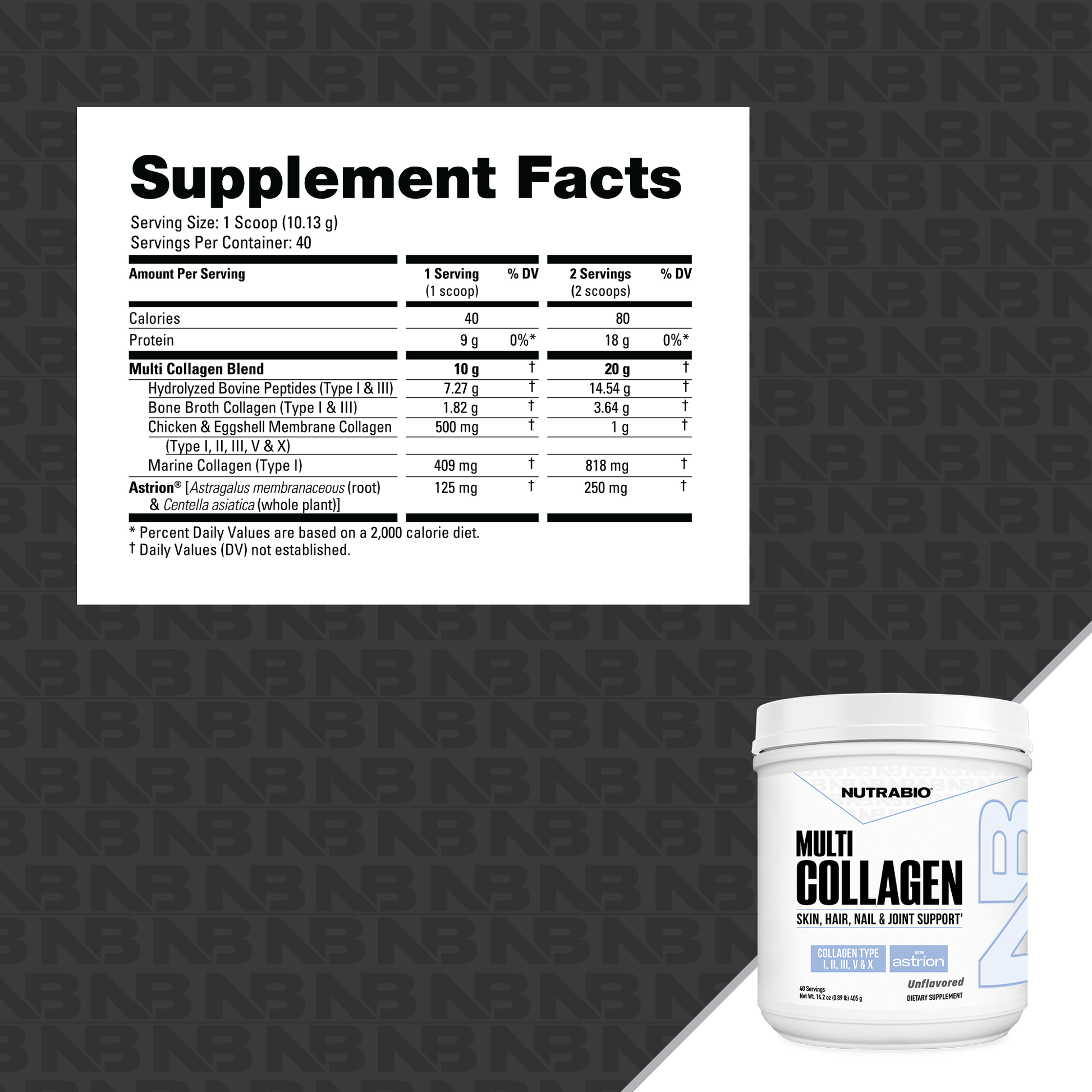 Reveal your bodys full potential with NutraBio Multi Collagen, the ultimate solution for an all-encompassing and comprehensive health and beauty supplement. This powerful multi source collagen powder combines various types of collagen to target multiple areas of your body, from promoting youthful, radiant skin to supporting strong hair and nails. But it doesnt stop there NutraBio Multi Collagen supplement also enhances joint health, aids gut function, and supports muscle recovery, making it an essential supplement for anyone looking to optimize their overall well-being.