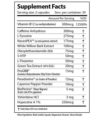 Clinically-Backed Ingredients – Featuring branded and researched compounds like ProGBB®, NeuroPEA™, and Paradoxine®.