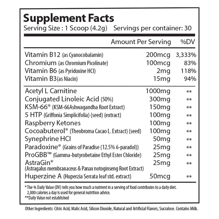 Alpha Supps® SWEAT is your answer to an extreme metabolic amplifier. With ingredients like Synephrine HCL, Paradoxine, PROGBB, and L Carnitine, you’ll boost thermogenesis and increase fat-burning capabilities like never before. And with absolutely ZERO caffeine this makes SWEAT a perfect supplement for evening exercise.